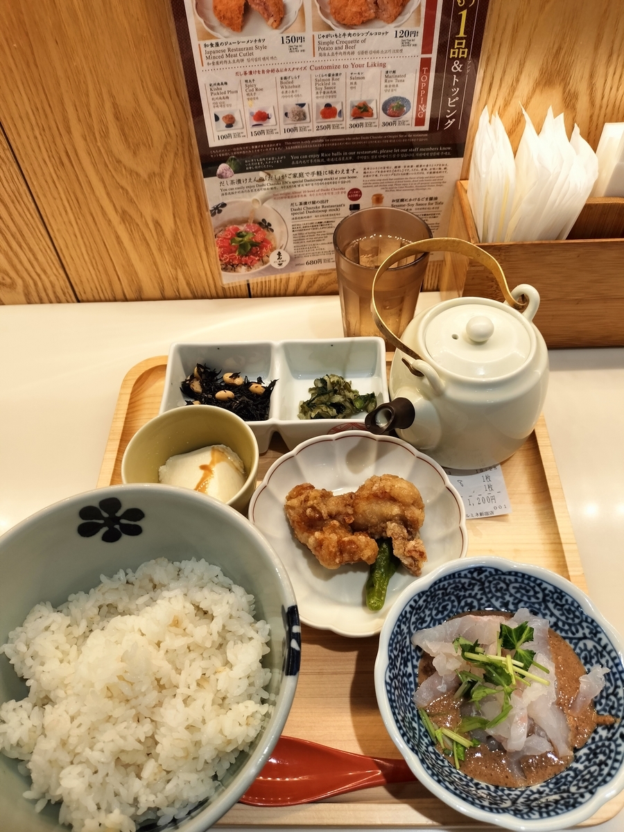 和食屋のジューシーメンチカツも気になるが…いや、唐揚げだ、これも追加と。
