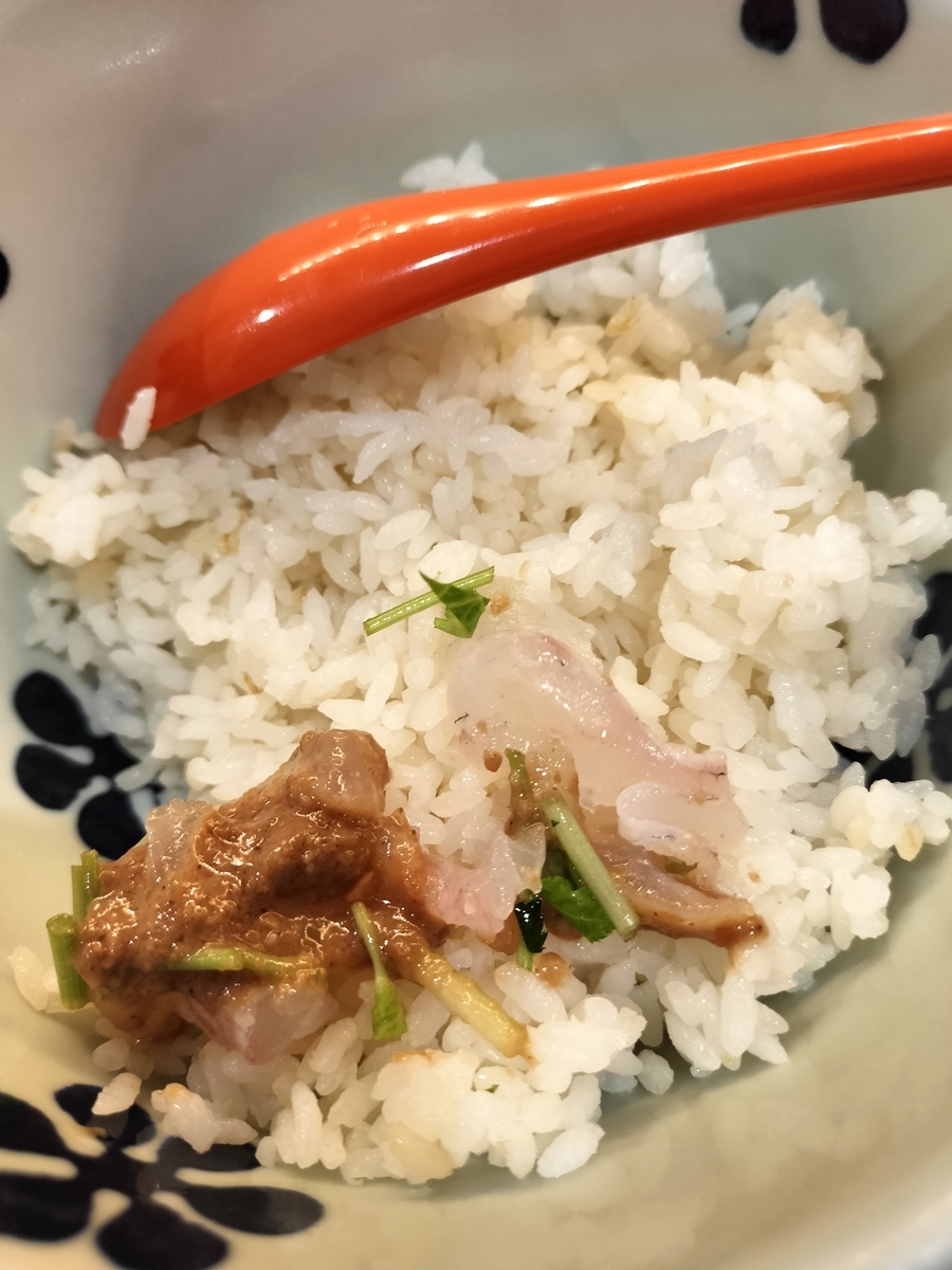 その淡白な米に、胡麻で味付けした鯛を乗っけて食べるが。