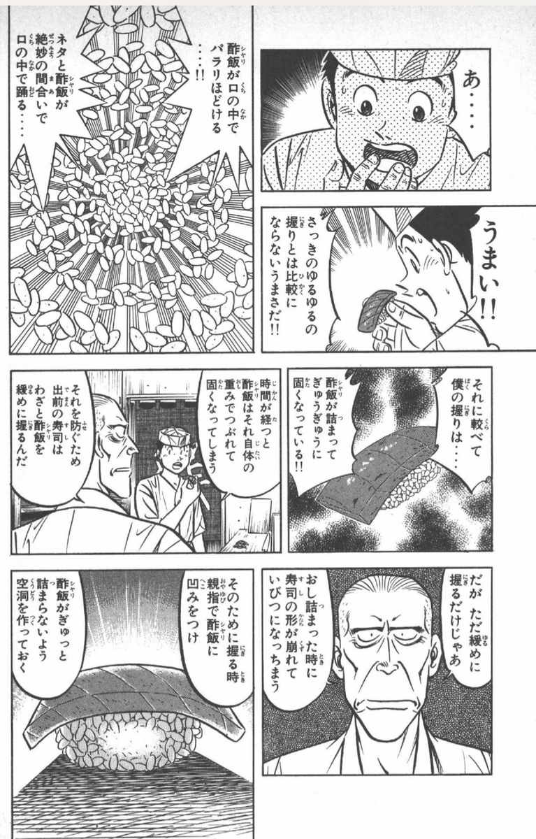 例えば、漫画「将太の寿司」9巻や22巻で。