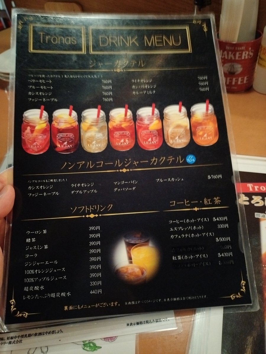 ノンアルコールジャーカクテル、いいね~下戸の俺にはありがたい。