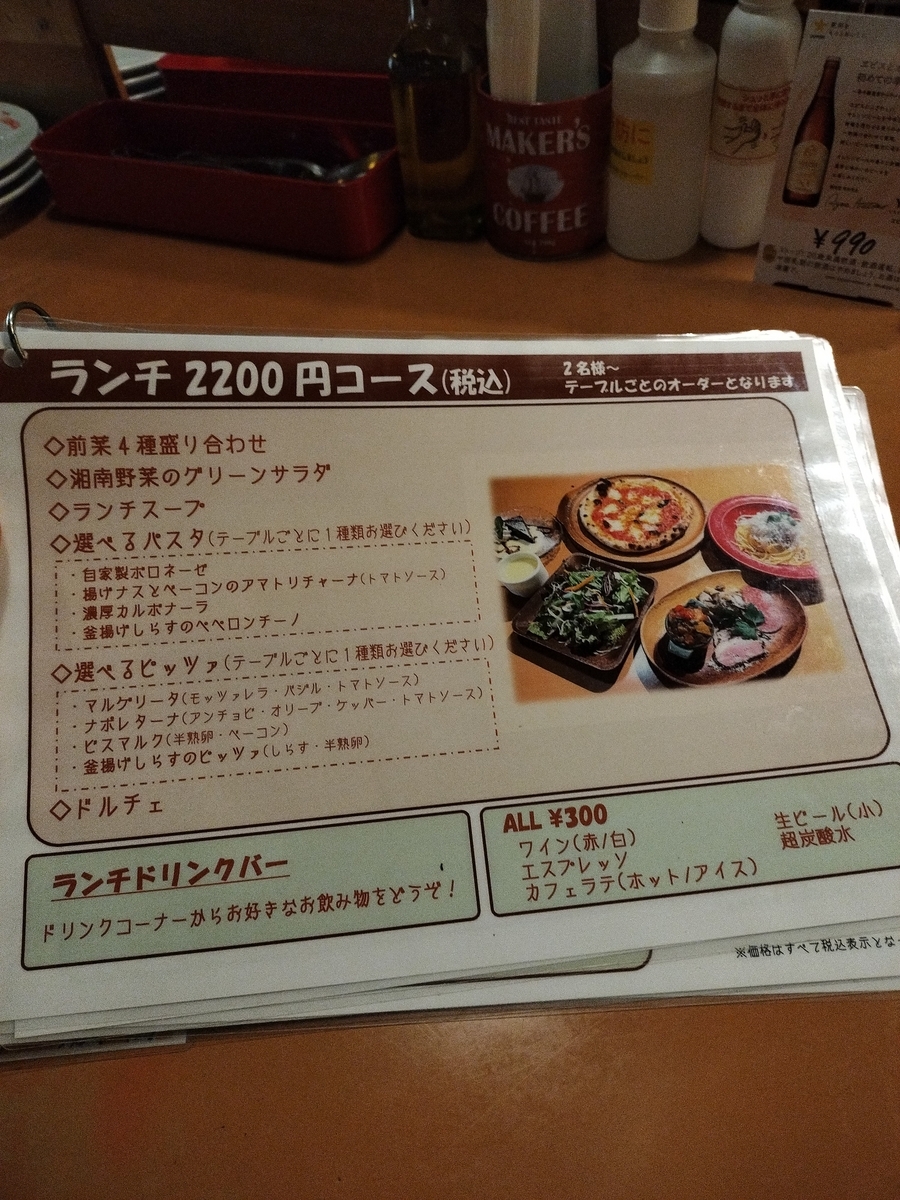 ランチ2200円コース、2名様からか…アローンの俺には味わうことができないね( ;∀;)